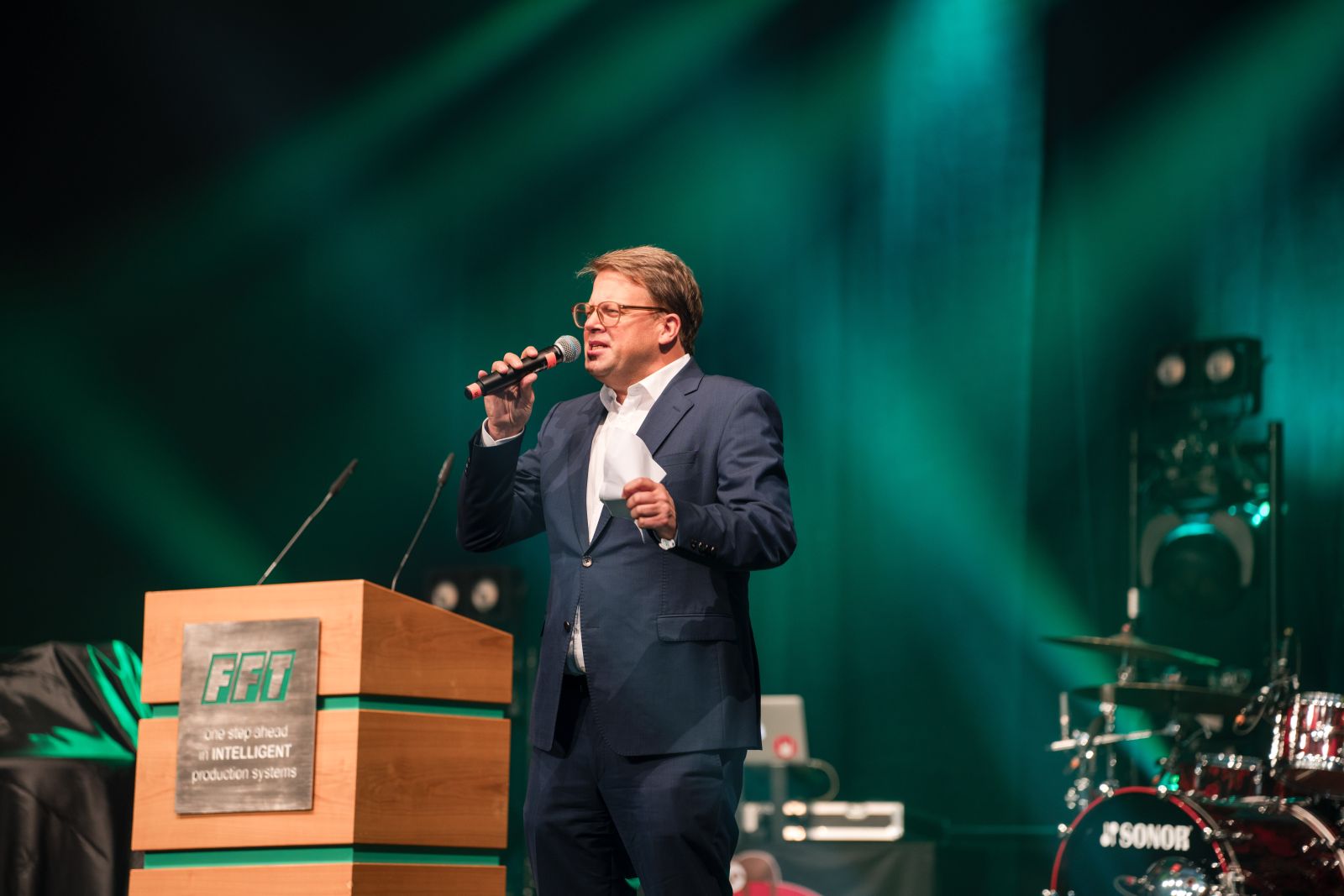 為慶祝翌耀科技旗下FFT Produktionssysteme(以下簡稱FFT)成立50周年,公司于11月8日在德國總部Fulda隆重舉辦了盛大的周年慶典活動。當天,來自業務合作伙伴、國際分支機構,員工及其家屬在內的1700余名嘉賓歡聚一堂,在Fulda共同度過了一個意義非凡的“綠色之夜”,共同慶祝FFT成立50周年這一里程碑時刻。