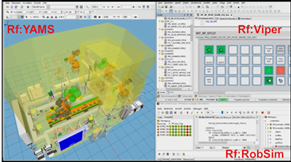 通過翌楷斯的仿真虛擬調試平臺產品 - RF::Suite ,可實現將原先局限于生產現場的大部分調試工作轉移至辦公室,給客戶帶來質量和效率的提升。用戶使用RE:Suite產品,可導入機械設計數據、3D模擬仿真數據、工藝設計數據、電氣硬件設計數據、PLC離線程序和機器人離線程序,構建“虛擬-現實”進行1:1還原,無需任何實體硬件投入,即可開展系統的集成和驗證,從而有效減少從設計到實現的錯誤率,縮短現場調試時間。該解決方案目前幾乎為全部德系汽車企業所選用,并且也被越來越多的國產汽車品牌所熟悉掌握。